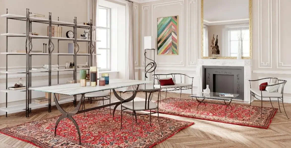 "short_description": "French-inspired decorative metal furniture for fine dining terraces and stately cafes. Art Nouveau charm meets intricate designs with lush metal foliage",